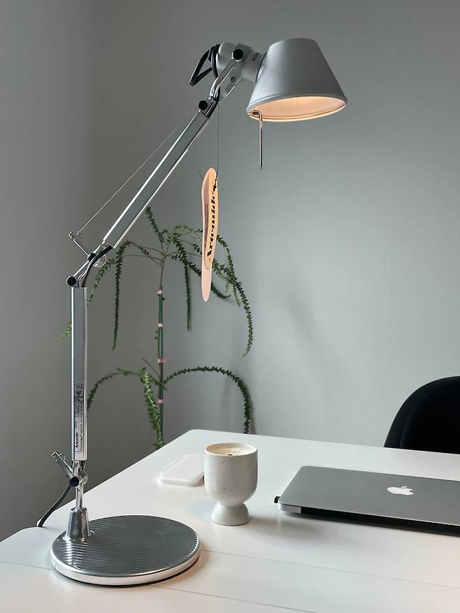서재 책상 중앙에서 주인공처럼 우뚝 서있는 이 친구는 아르떼미데의 톨로메오 마이크로 테이블 조명입니다. 대학생 때 주황색 빛을 머금은 버섯 모양의 네시노 조명을 처음 보고는 아르떼미데에 반했었는데요.
