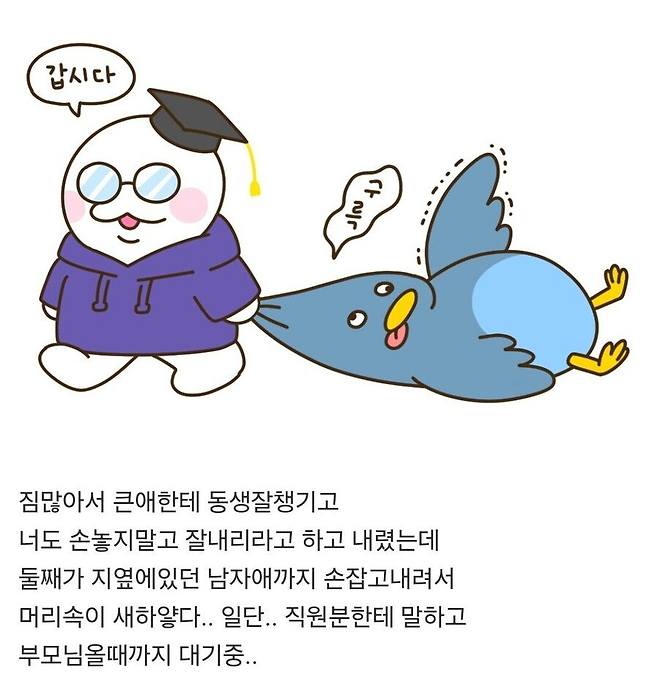 조카: 삼촌이 손 놓지 말라고 했어요!