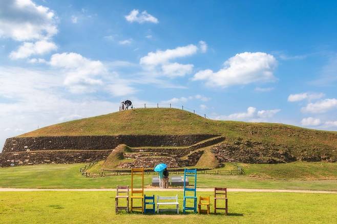 맑은 하늘과 호로고루, 그리고 청보리의 조화. 그리고 성벽 위에 올라서면 임진강을 따라 이어진 연천의 풍경은 말이 필요 없습니다. 여름 주말 데이트 코스 추천으로 호로고루, 자연의 상쾌한 매력 속에 빠져보세요.