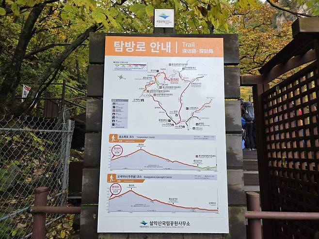 흘림골 구간은 일방통행이며, 용소폭포 삼거리에서 되돌아가기는 불가합니다.