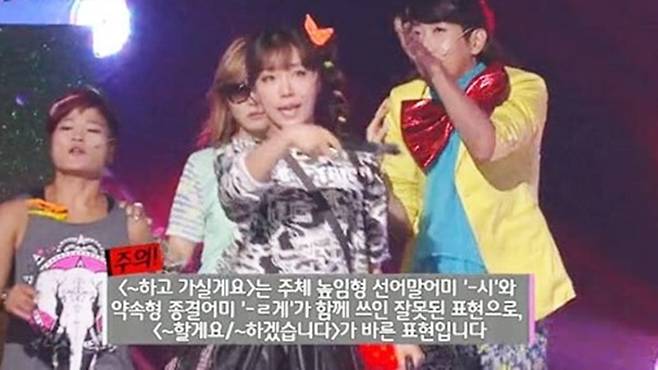 뿜 엔터테인먼트에서 나온 “언니 ~하고 가실게요.”라는 대사의 경우 어법에 맞지 않는다고 하여 경고 먹고 정정 자막까지 올려야 했다고 한다.