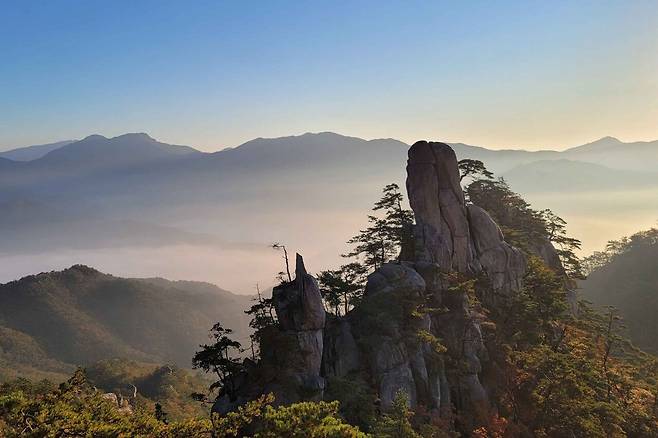 밤에는 도심 불빛, 새벽에는 운무 낀 능선이 몽환적