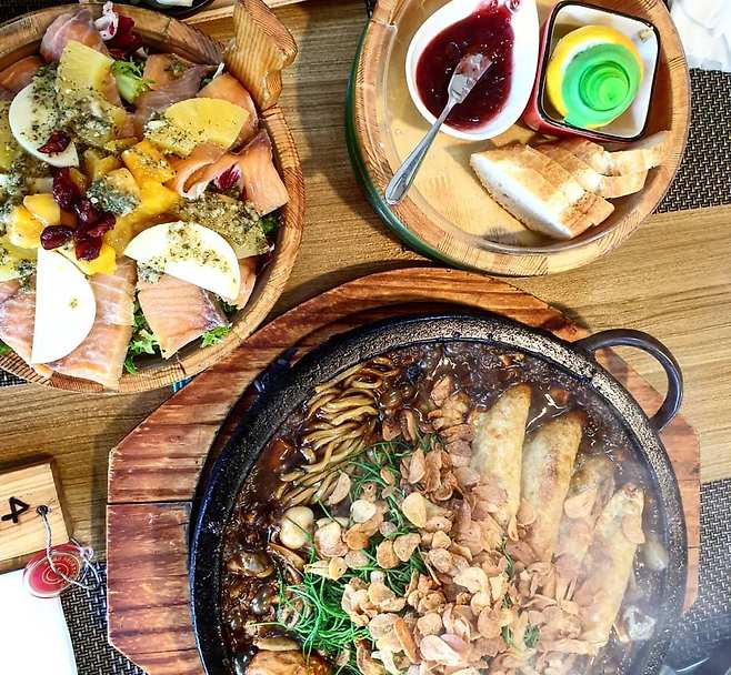 다양한 해산물과 짜장면을 함께 먹는 즐거움을 느낄 수 있는 가평 '청평돌짜장'. 깊은 춘장맛이 느껴지는 소스는 뜨거운 돌판에서 각종 해산물과 면에 스며들어 먹을수록 매력적이다. 푸짐한 양은 보기만 해도 놀랄 정도. 김치전과 계란후라이를 셀프로 해 먹을 수 있는데 계란후라이는 돌짜장과 함께 먹어도 궁합이 좋다. '겉바속촉'의 멘보샤도 함께 먹으면 더욱 맛있게 먹을 수 있다.