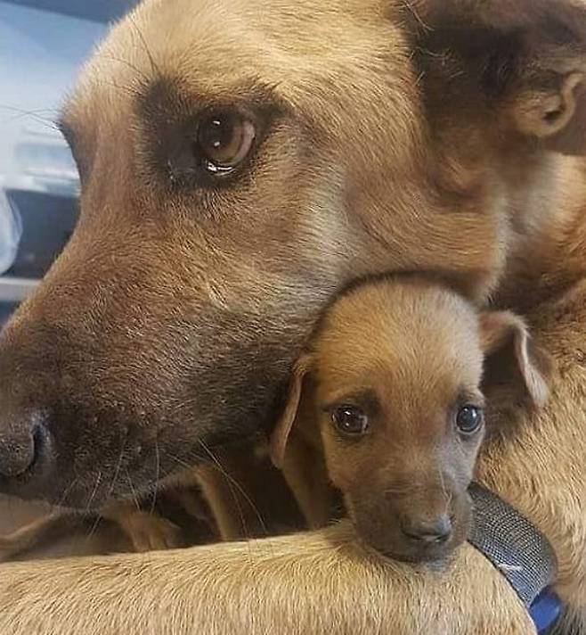 공개된 사진 속 어미개는 단호한 표정을 짓고 있었습니다. 눈가에는 금세 눈물이 맺혔고 경계하는 듯한 모습은 보는 이들의 마음을 뭉클하게 했는데요.