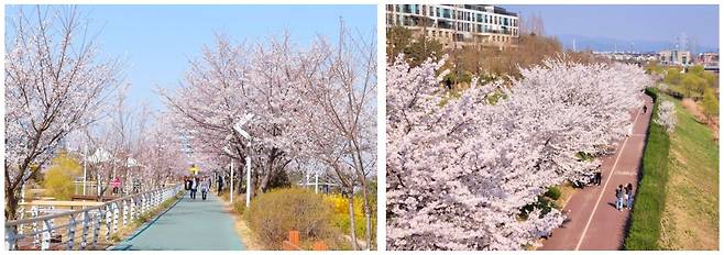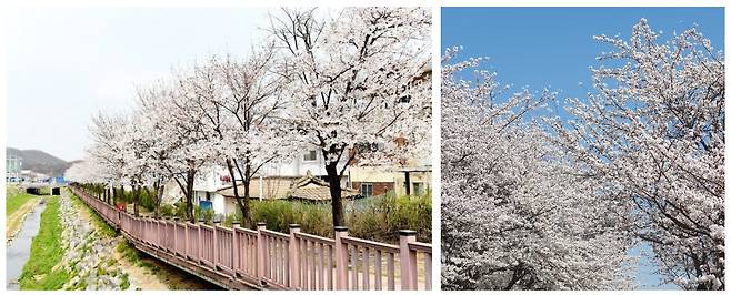왕복 약 3km 남짓의 벚꽃 산책로는 싱그러운 초록빛으로 물드는 잔디와 졸졸졸 흐르는 하천까지 평화로운 풍경을 보여주는데요.
