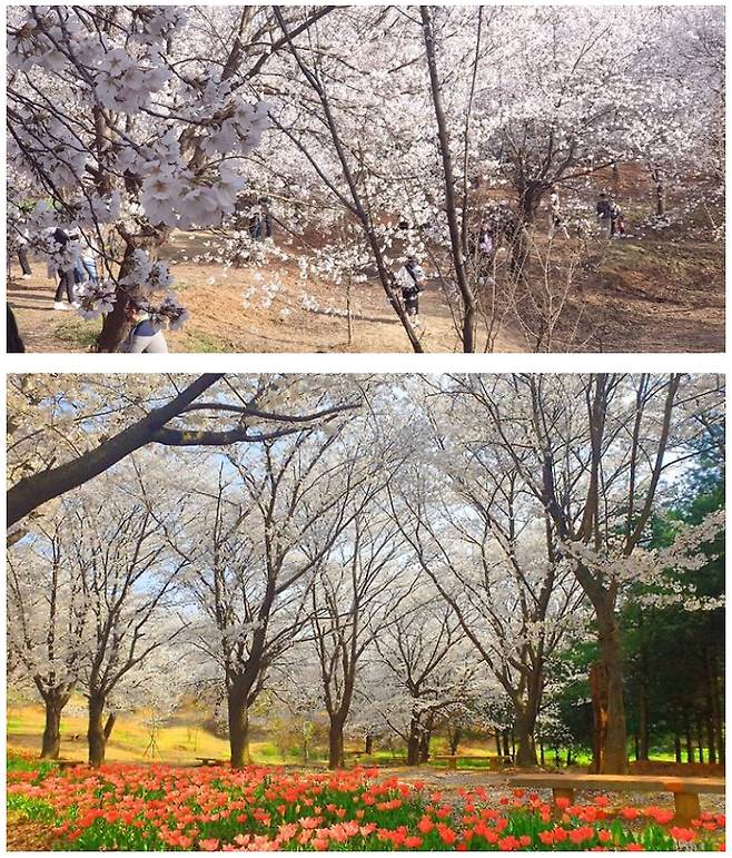 기도원 내에는 벚꽃 외에도 매화, 튤립 등 다양한 봄꽃이 피어나 다채로운 봄꽃 구경을 할 수 있는데요. 산책로 양쪽으로 벚나무들이 심어져있어 화사한 벚꽃 터널 아내를 걷기에도 좋습니다. 기도원 옆으로 길게 뻗은 메타세콰이어 길은 봄철 싱그러운 잎이 돋아나 봄을 제대로 만끽할 수 있죠.