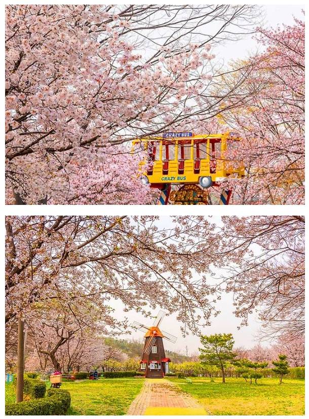 파주의 작지만 알찬 놀이공원 하니랜드는 숨겨진 파주의 벚꽃 명소입니다. 작고 오래된 놀이공원은 레트로한 감성을 가득 풍기고 있어 동화같은 풍경을 볼 수 있는데요. 봄이 되면 빈티지한 놀이공원과 벚꽃이 조화를 이루어 숲 속 놀이공원에 온 듯 합니다.