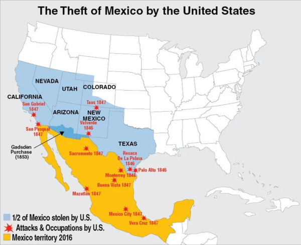 이 때에 텍사스와 별개로 캘리포니아, 뉴멕시코, 애리조나, 네바다, 유타, 콜로라도 일부도 1500만 달러를 받고 어쩔 수 없이 팔아야 했다. 미국 사회는 이를 ‘명백한 운명(Manifest Destiny)’이라 불렀다.