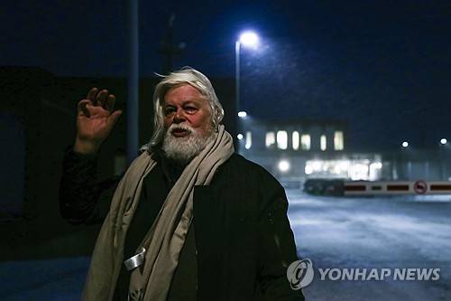 Environmental activist Paul Watson waves as he is released from prison in Nuuk, Greenland, Tuesday Dec. 17, 2024. (Alataq Moeller/Ritzau Scanpix via AP) DENMARK OUT; MANDATORY CREDIT