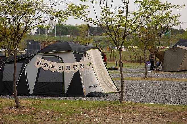 이제 임진각 평화누리공원에서 캠핑을 즐길 수 있다. 오랫동안 새 단장을 마친 평화누리캠핑장이 말끔한 모습으로 재개장했기 때문이다. 총 128면의 캠핑 사이트와 다양한 편의시설을 갖춘 대형 캠핑장으로 경기관광공사가 직접 운영한다.