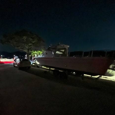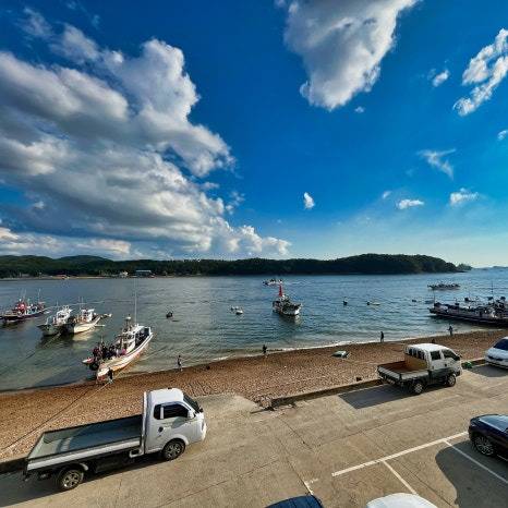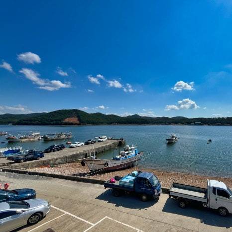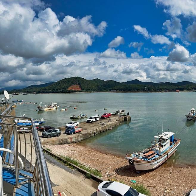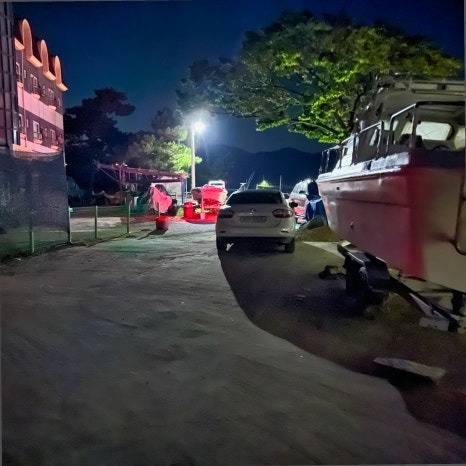 다온펜션에서 바라본 일부 주차장과 바로 앞 포인트에서 낚은 갑오징어