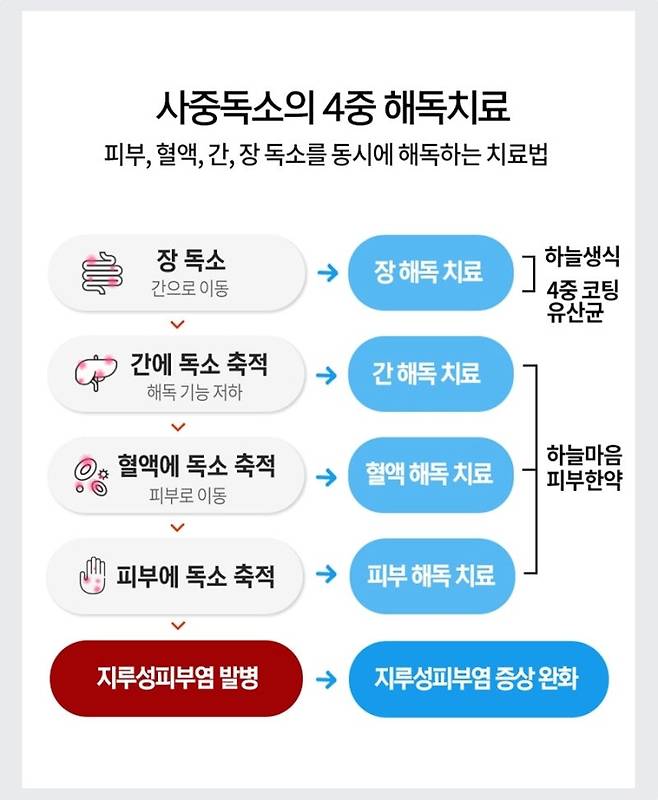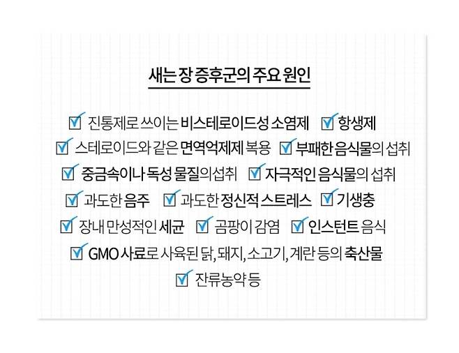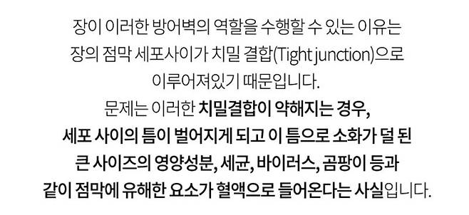 만성 피부 질환 환자들은 장 건강이 좋지 않은 경우가 많습니다. 장은 우리 몸 면역 세포의 70% 이상이 존재하는 중요한 기관입니다. 잘못된 식습관으로 장 기능이 저하되면 면역력이 떨어지고 피부 건강에도 악영향을 미칩니다.