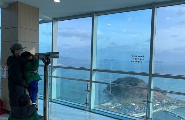 27층 120m 높이의 전망대에서는 남해 일대를 조망할 수 있는데 인근의 부산항 신항과 거가대교까지도 감상할 수 있습니다. 전망대는 사방이 통유리창으로 되어 있고 일부 구간은 바닥이 투명 유리로 되어 있어 아찔한 스릴도 즐길 수 있는데요.