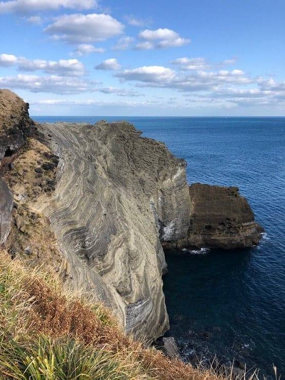 해안절벽을 따라 형성된 붉은 화산송이 층과 깎아지른 절벽은 자연이 빚어낸 예술작품처럼 장관을 이뤄요. 특히 사자가 바다를 향해 포효하는 듯한 형상의 화산체는 세월의 무게를 더한 자연 조각상으로 감탄을 자아냅니다.