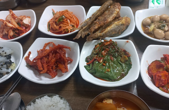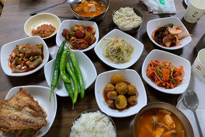 ▶ 반찬, 국, 밥 전부 무한리필 가능!매일 6~7가지의 반찬이 정성스럽게 차려지고, 집밥 같은 따뜻함이 그대로 느껴집니다.