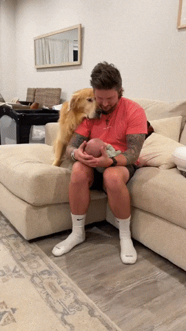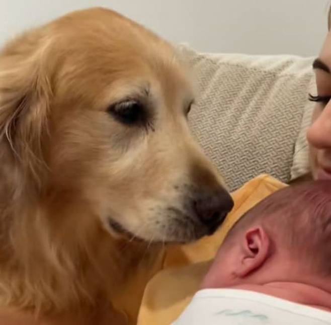 실제로 골든 리트리버 강아지 라일리에게도 처음 만나는 아기였는데요. 첫 만남의 순간을 아빠는 영상으로 찍어 SNS에 올렸죠.