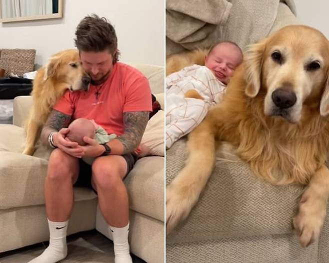 골든 리트리버 강아지 라일리를 키우는 한 가족에게 얼마 전 큰 변화가 찾아왔습니다. 아빠와 엄마가 기다리던 새 가족, 아기가 태어난 것.