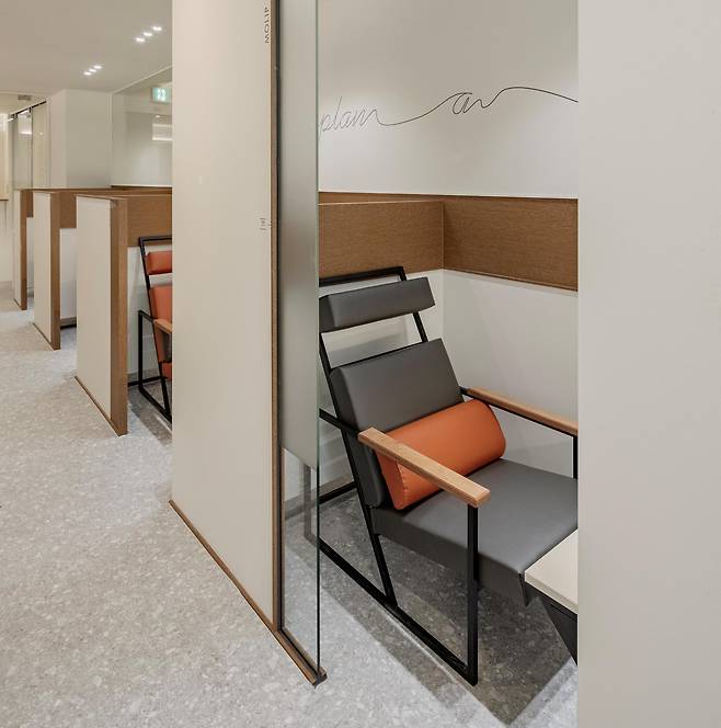 머리가 아닌 목을 기댈 수 있도록 설계해 몸이 편안히 이완되는 것이 특징이다. 머리가 무겁게 느껴지는 건 힘을 제대로 빼지 못하기 때문이다. 졸릴 때 고개가 툭 하고 떨어지는 것도 머리의 무게 때문이다. 그렇다고 해서 뒤통수를 기대면 오히려 불편하다. 머리가 아닌 목을 지지해야 편안함을 느낀다. 그래서 일을 하다가도, 생각을 하다가도 자연스럽게 목을 기댈 수 있게 만들었다.