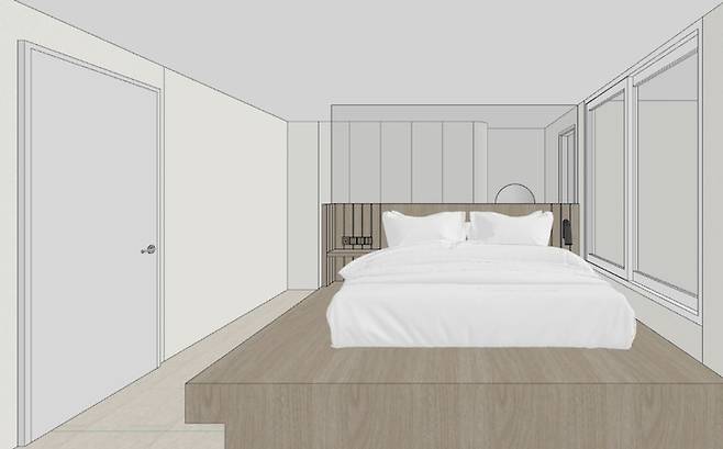 사용하던 침대 매트리스는 가로 193 x 세로 203의 이스턴 킹사이즈였어요. 이 큰 침대와 큰 창을 어떻게 해결할지도 숙제였지요. 기성품 가구로는 대안이 안 나와서 침대 프레임을 제작하기로 했습니다.