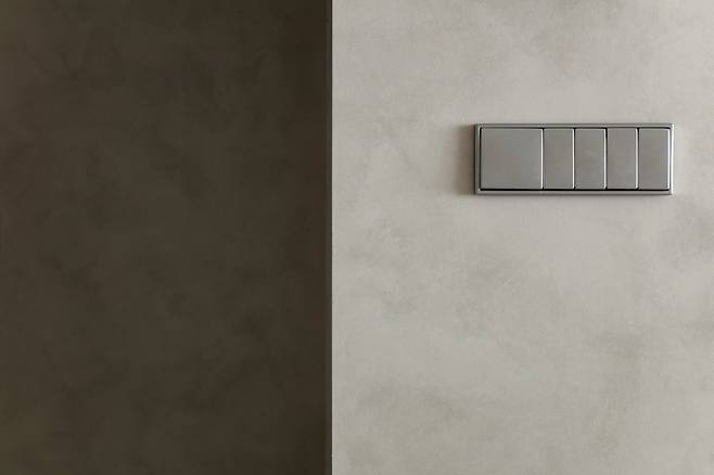 거실 및 주방 공용부에는 모두 스테인리스 소재의 융 스위치로 시공했어요. 흰색, 아이보리 색상의 융 스위치도 고민했지만 과감하게 스테인리스로 선택하길 잘한 것 같아요. 오히려 눈에 잘 띄지 않아서 편안한 공간을 완성시켜준 느낌이에요.