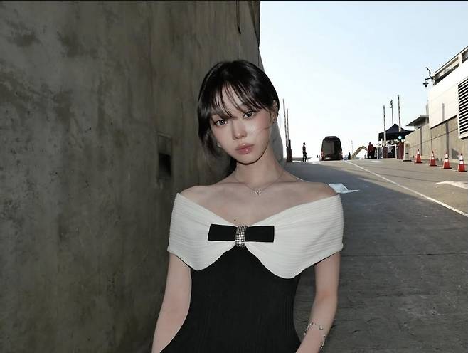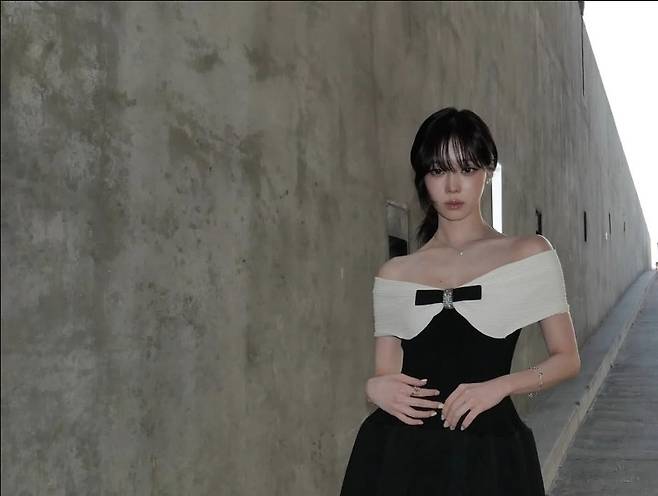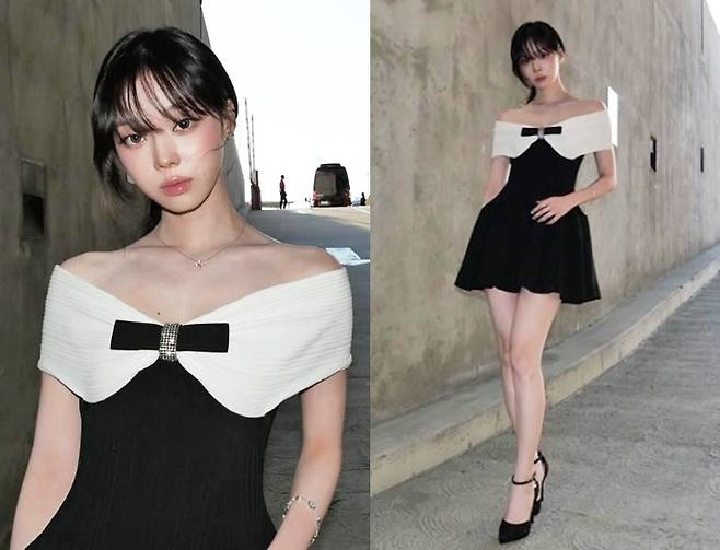 에스파 윈터가 모던하면서도 우아한 오프숄더 미니드레스룩으로 고혹적인 매력을 발산했습니다.