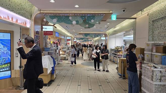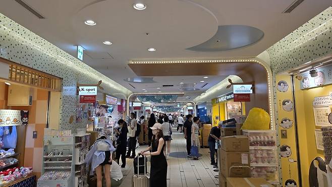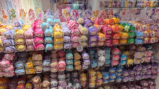 여기 지하상가에 캐릭터 관련 굿즈를 판매하는 상점들이 쫙 배치되어 있습니다.