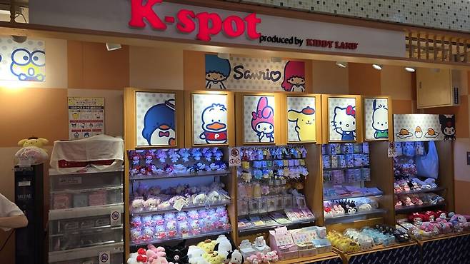 마이멜로디, 헬로키티 같은 산리오 관련 굿즈를 판매하는 K-spot 매장입니다.