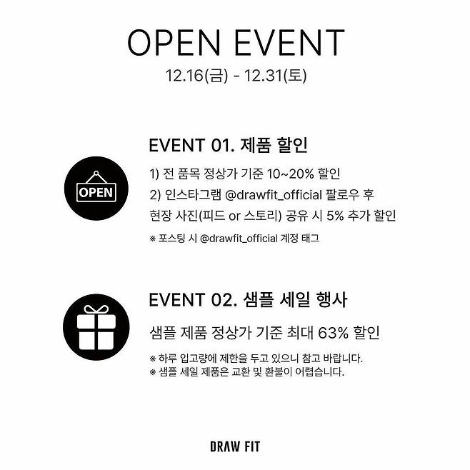 12월 16일 ~ 12월 31일동안 진행 되는 드로우핏 동부산점 스토어,