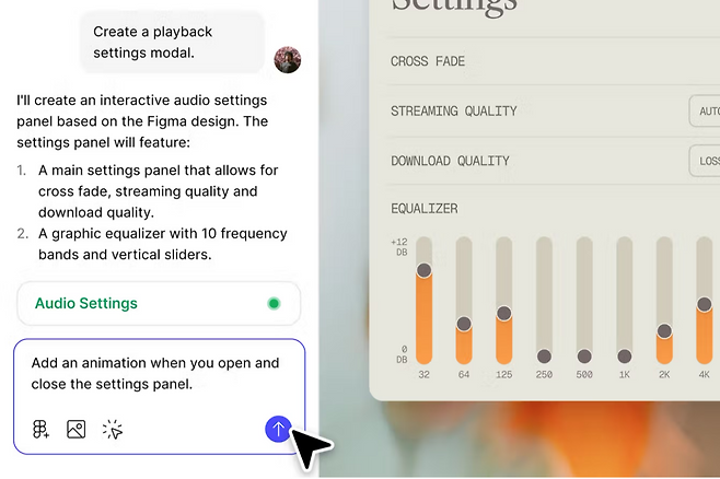 피그마 메이크는 앤트로픽의 '클로그 3.7 소네트' 모델을 기반으로 구동된다. 복잡한 코드 없이도 애니메이션, 인터랙티브 버튼 등을 추가할 수 있다. 실제 데이터로 프로토 타입을 만들 수 있고, 앱의 데스크톱 버전을 만들어 테스트할 수도 있다.
