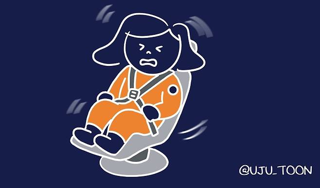 지구에서 차멀미가 나는 이유는 눈으로 받아들이는 시각 정보와 전정기관 사이의 불일치 때문이에요. 예를 들어 차 안에서 책을 읽으면, 눈은 가만히 있다고 생각하지만 전정기관은 움직임을 감지해서 뇌가 혼란을 느끼는 거죠.