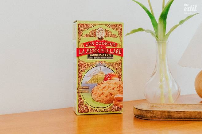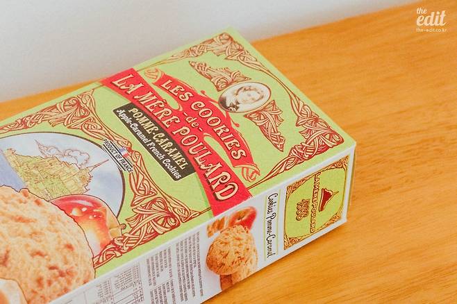 파리에서 400km 떨어진 곳에 몽생미셸섬이 있다. 썰물일 때는 육지가 되고 밀물일 때는 섬이 된다. 마치 바다 위에 둥둥 떠 있는 성처럼 보인다. <라푼젤>, <반지의 제왕> 등 여러 작품의 모티브가 될 정도로 아름다운 곳이다. 몽생미셸섬에 가면 꼭 먹어봐야 하는 쿠키가 있다. 바로 1888년에 오픈한 레스토랑 라메르 풀라르의 쿠키다. 과자 패키지를 살펴보자. 중앙에 있는 그림이 바로 몽생미셸섬이다.