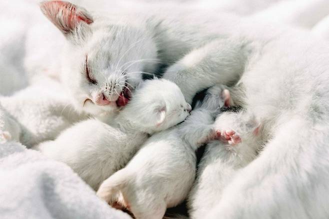 알비노 고양이는 흰 고양이처럼 햇볕을 오래 쬐면 눈이나 피부, 털이 손상될 수 있다고 해요. 심각한 경우, 실명이나 피부암에 걸릴 수 있으니 고양이가 직사광선에 노출되지 않게 신경 써야 합니다.