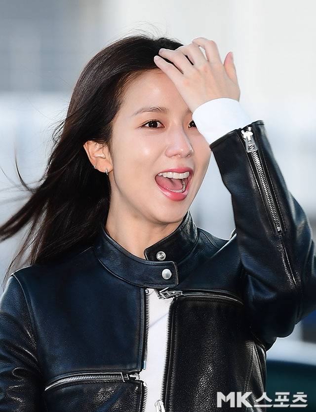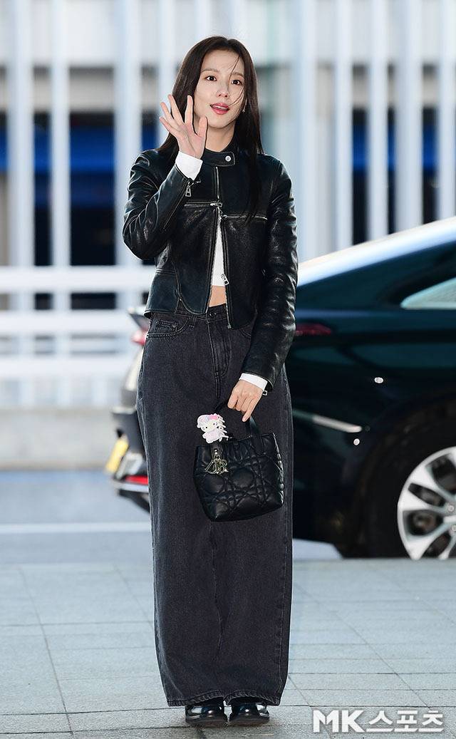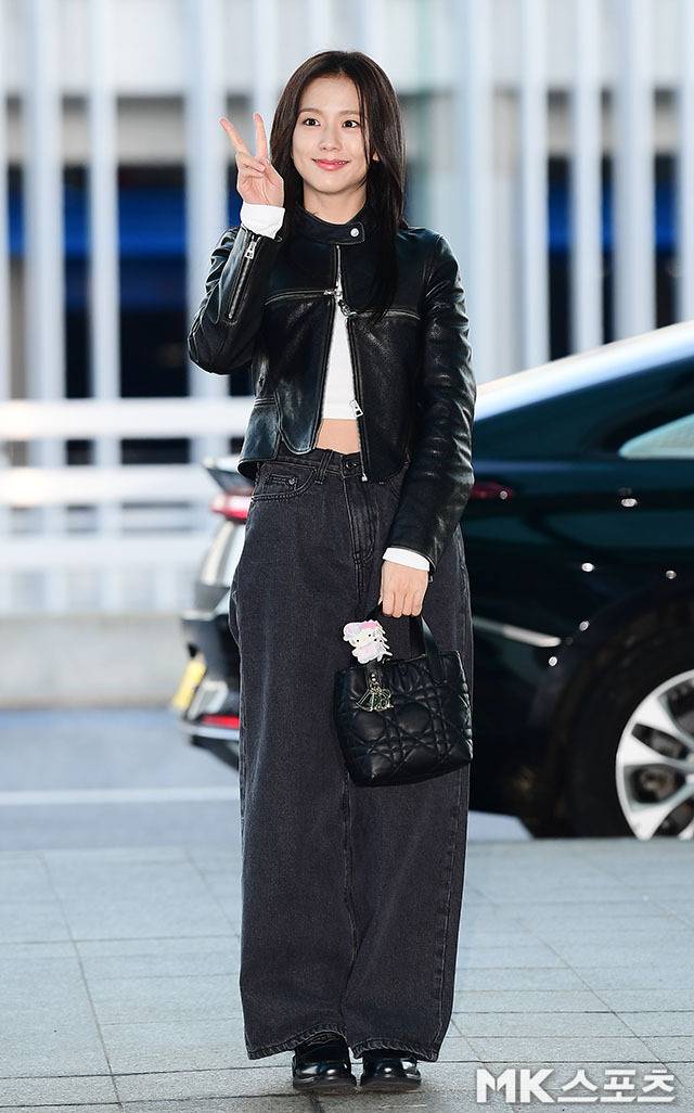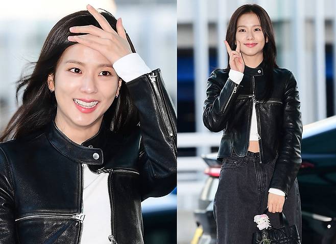 지수는 크롭 길이의 가죽 재킷을 선택해 고급스러움과 캐주얼함을 동시에 잡았습니다.