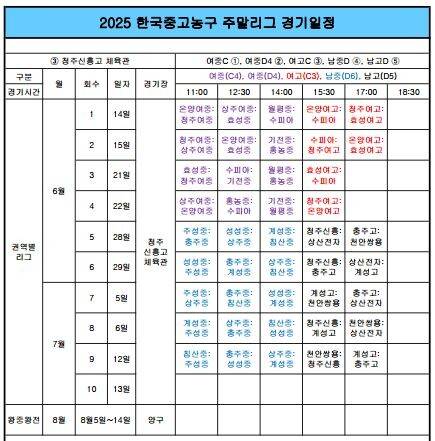 오는 6월 14일부터 시작되는 주말리그 권역별 리그는 7월 13일에 마무리되며, 왕중왕전은 양구에서 8월 5일부터 14일(9박 10일)까지 열린다.