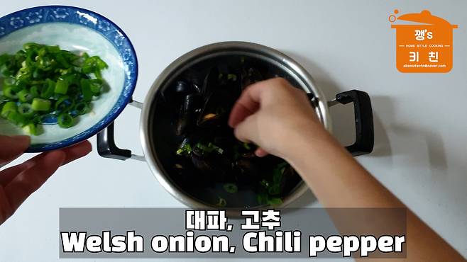 홍합, 양파, 대파, 청양고추, 소금