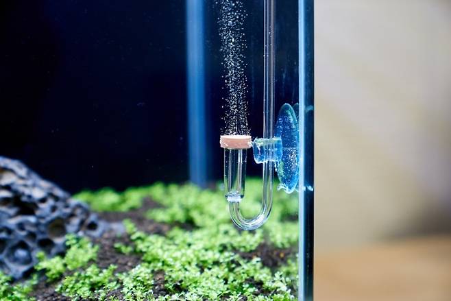이산화탄소기를 연결해주면 수초가 싱싱해져
