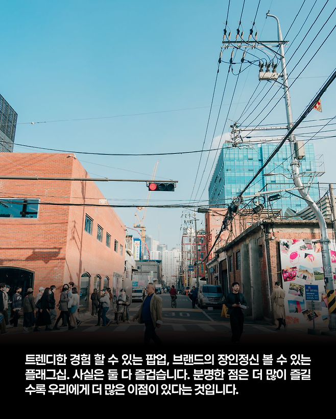 트렌디한 경험 할 수 있는 팝업, 브랜드의 장인정신 볼 수 있는 플래그십. 사실은 둘 다 즐겁습니다. 분명한 점은 더 많이 즐길 수록 더 좋아질 거라는 것이죠. 그래야 브랜드들이 더 섬세하고 재미있는 기획으로 우릴 찾아올테니까요.