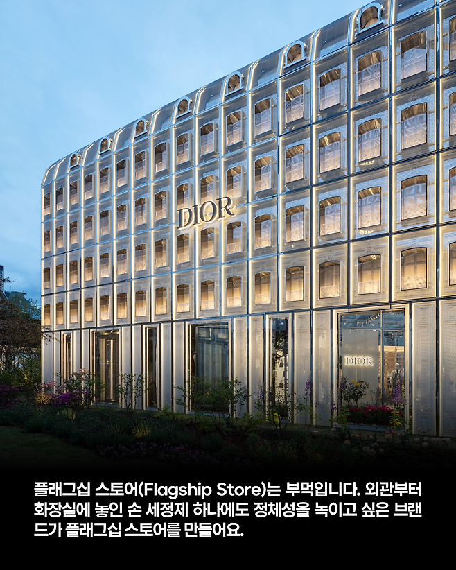 플래그십 스토어(Flagship Store)는 부먹입니다. 외관부터 화장실에 놓인 손 세정제 하나에도 정체성을 녹이고 싶은 브랜드가 플래그십 스토어를 만들어요. 그들의 공간에서 먹고 보고 즐기는 것이 전부 그 브랜드를 소비하는 행위가 되도록 하는 게 포인트입니다.