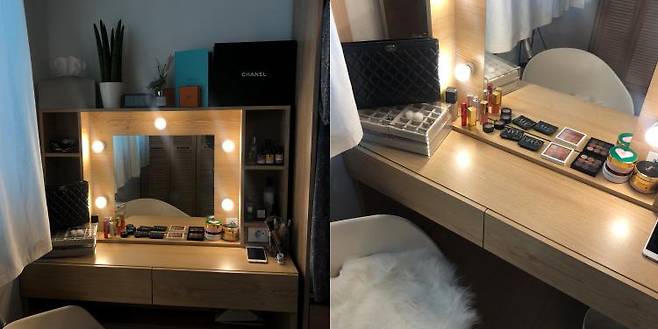 여긴 독립된 저만의 공간이에요. 제가 쓰는 화장대는 파로마 제품인데 수납도 좋고 조명도 들어오고 콘센트까지 있어 정말 실용적이에요!