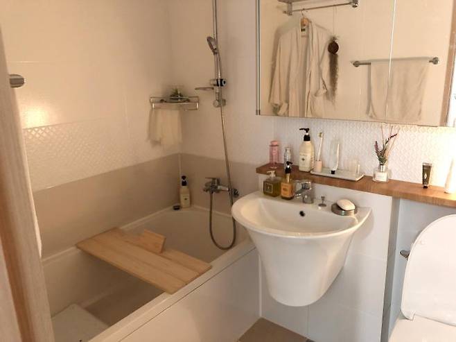 욕조가 있으니, 반신욕을 주로 하는데요, 피로도 풀리고 너무 좋아서 욕조 있는 욕실 정말 만족해요~