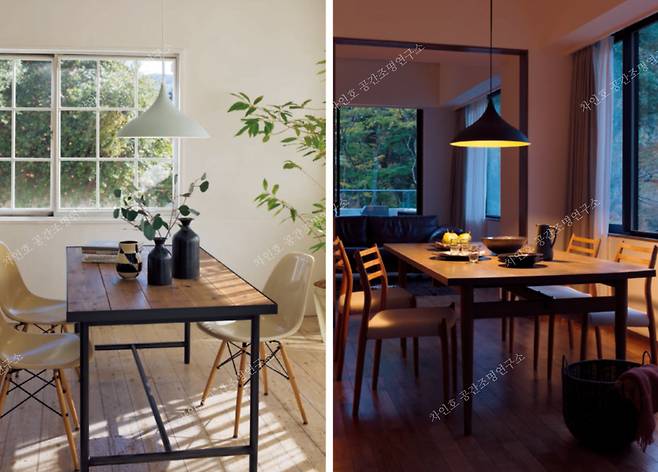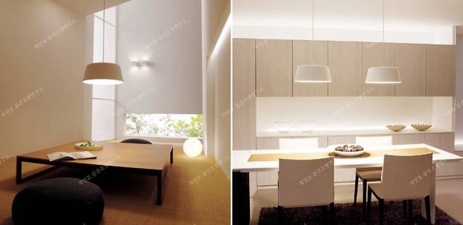 최근 더욱 다양한 형태로 조리공간과 식탁, 주방과 식당이 마주 보는 경우가 많다. 심리적 안 정감을 위한 좌탁이나 전통적인 평상을 응용한 설계 적용도 늘었다. 그래서 식탁조명도 선택의 폭이 넓어지게 되었다. 식탁 크기와 천장 높이, 식탁에서 LDK의 다른 영역으로 옮겨지는 자연스러운 시선을 고려한다면 조명 방식의 선택도 더욱 다양해진다.