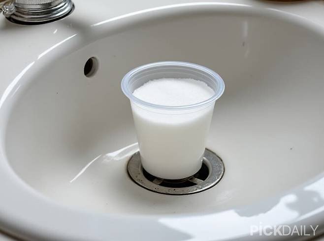 플라스틱 컵은 과탄산소다의 거품을 좀 더 천천히 흘려보내주는 역할이므로, 마땅한 컵이 없다면 그냥 배수구 구멍 바로 위에 과탄산소다와 주방세제를 직접 뿌려줘도도 괜찮다.