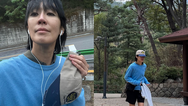 편안한 운동복을 입고 지친 기색 속에서도 빛난 방송인 홍진경이 아침 9시부터 저녁까지 이어진 고된 러닝의 순간을 공개했다.
