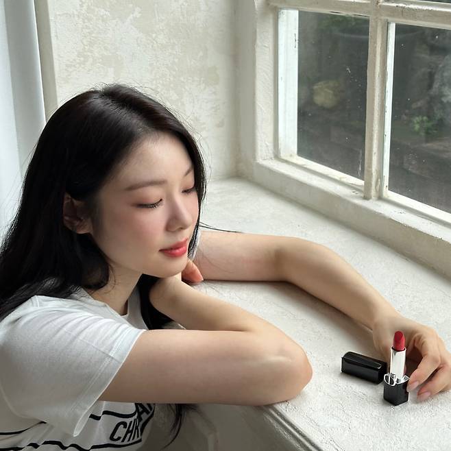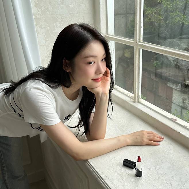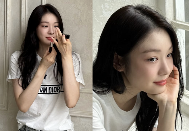 사진 속 김연아는 디올 티셔츠와 청바지를 매치한 청순한 패션에 디올 립스틱으로 포인트를 줬습니다.