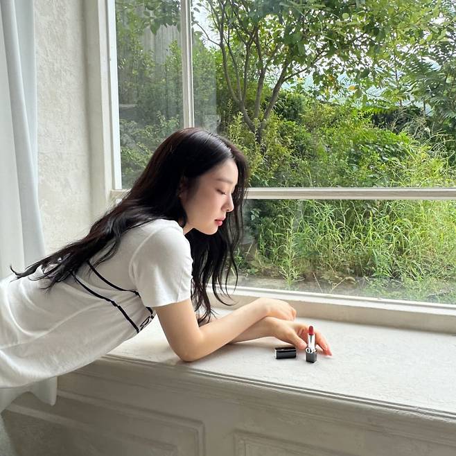 사진 속 김연아는 디올 티셔츠와 청바지를 매치한 청순한 패션에 디올 립스틱으로 포인트를 줬습니다.