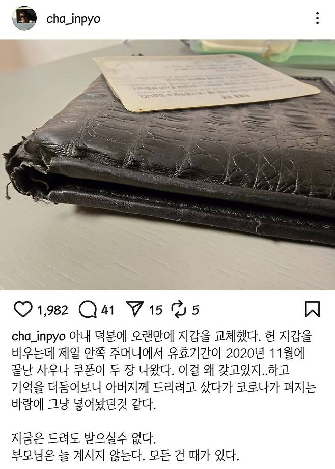 차인표가 헌 지갑 안에서 발견한 것.jpg