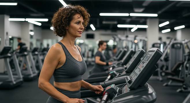 실내 러닝머신을 이용해 시속 4~5km 정도의 속도로 걷습니다. 경사도를 크게 올리지 않고, 발뒤꿈치부터 부드럽게 디디는 것이 핵심입니다.