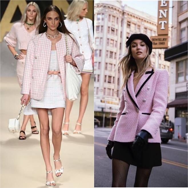 트위드 자켓과 유행 아이템인 키튼힐로 가벼운 포인트!