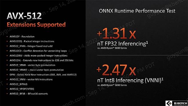 AVX-512는 이미 보편화 된 AVX2 보다 2배 확장된 레지스터를 활용하며 클럭당 처리할 수 있는 FP 연산 능력을 크게 높일 수 있는 확장 명령어 집합이다. 이 기술은 인텔이 먼저 구현해 이미 서버 시장에 구현해 놨으며 일부 데스크탑 프로세서에도 적용한 바 있다.