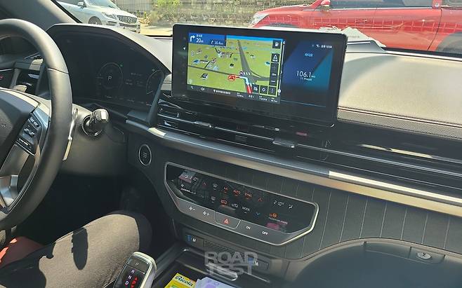 공조장치 버튼은 깔끔한 디자인의 터치 패널 속에 몰아넣었다. 대신 누르기 편리하진 않다. 버튼을 눌러도 작은 작동음만 날 뿐 손끝으로 느낄 수 있는 햅틱 반응이 없어서다. 운전 중 바람 세기나 온도를 정확히 조절하려면 흘깃 쳐다보며 눌러야 한다.